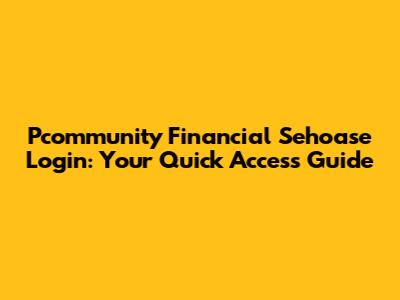 Pcommunity Financial Sehoase Login: Your Quick Access Guide