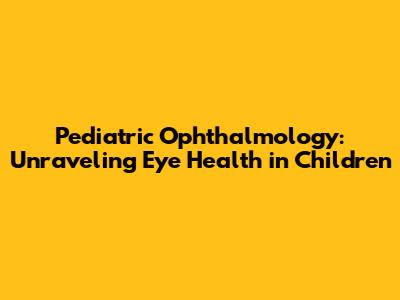Hey guys, let's dive into the fascinating world of pediatric ophthalmology! It's a field dedicated to the eye health of our little ones. From the moment they're born, their eyes are developing, and as parents, we want to make sure those peepers are in tip-top shape. This guide will walk you through common eye conditions in children, how they're diagnosed, and what treatments are typically involved. Think of it as your friendly go-to resource for everything related to your child's vision.