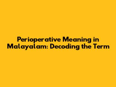 Perioperative Meaning In Malayalam: Your Complete Guide