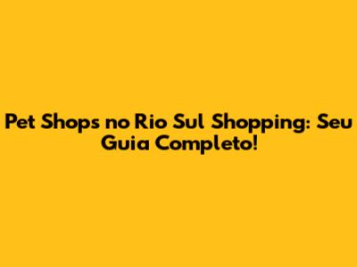 Pet Shops No Rio Sul Shopping: Guia Completo!