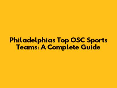 Philadelphia's Top OSC Sports Teams: A Complete Guide