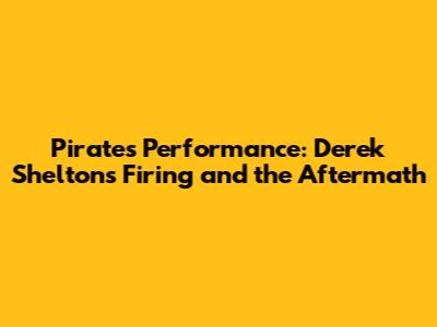 Pirates' Performance: Derek Shelton's Firing And The Aftermath