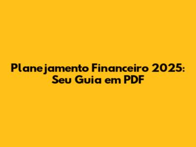 Planejamento Financeiro 2025: Seu Guia Em PDF