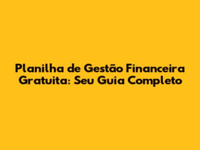 Planilha De Gestão Financeira Gratuita: Seu Guia Completo
