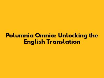 Polumnia Omnia: Unlocking The English Translation