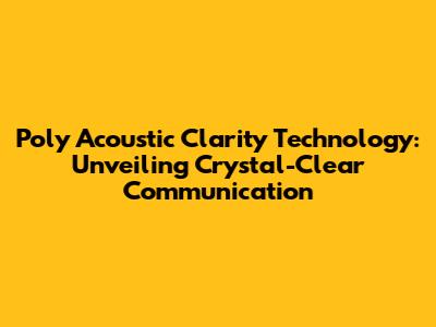 Hey guys! Ever been on a call where the audio sounds like it's coming from the bottom of the ocean? Yeah, we've all been there. It's frustrating, right? But what if I told you there's a tech wizard out there, specifically Poly Acoustic Clarity Technology, that's dedicated to banishing those audio gremlins and bringing you crystal-clear communication? Let's dive deep into this awesome technology and see how it's revolutionizing the way we connect, collaborate, and, well, hear each other.