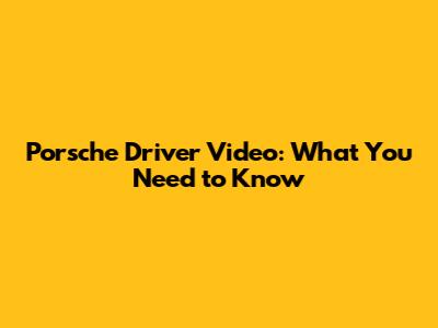 Porsche Driver Video: What You Need To Know