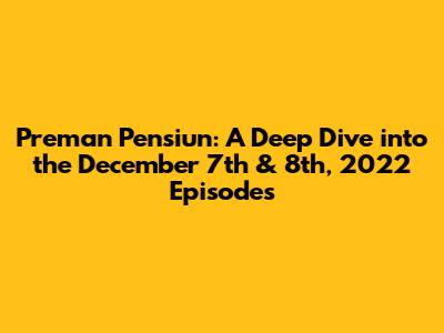 Hey guys! Let's rewind to December 7th and 8th, 2022, shall we? Those were some pivotal days for fans of Preman Pensiun, the ever-popular Indonesian drama. The show, known for its gripping portrayal of life after crime and the struggles of ex-gangsters, consistently delivers high drama. So, what went down in those episodes? Let's break it down, providing a detailed recap and exploring some of the key themes and character developments that made these episodes so memorable. We'll delve into the conflicts, the alliances, and the quiet moments of reflection that make Preman Pensiun such a compelling watch. Get ready to revisit those exciting episodes!