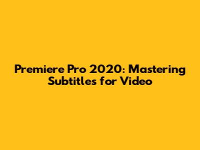 Premiere Pro 2020: Mastering Subtitles For Video