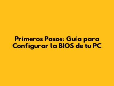 Primeros Pasos: Guía Para Configurar La BIOS De Tu PC