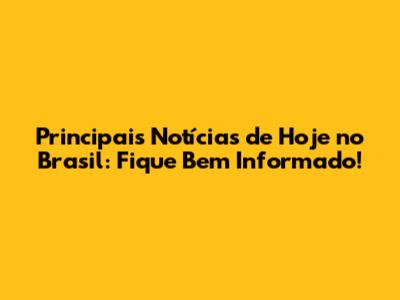 Principais Notícias De Hoje No Brasil: Fique Bem Informado!