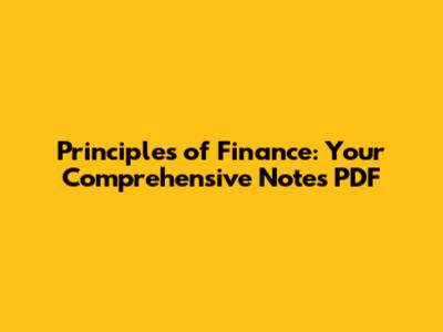 Principles Of Finance: Your Comprehensive Notes PDF