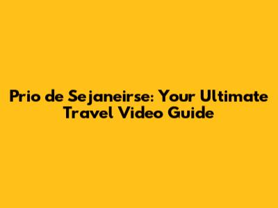 Prio De Sejaneirse: Your Ultimate Travel Video Guide