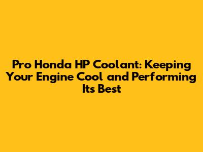 Pro Honda HP Coolant: Your Guide To Peak Engine Performance