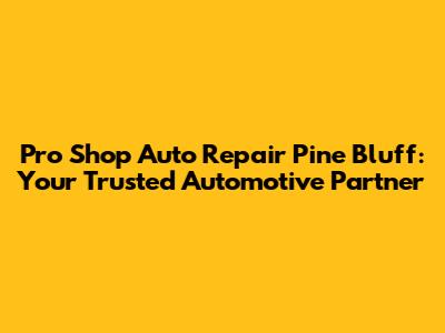 Pro Shop Auto Repair In Pine Bluff: Your Local Guide