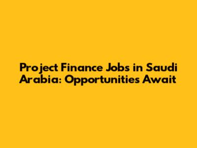 Project Finance Jobs In Saudi Arabia: Opportunities Await