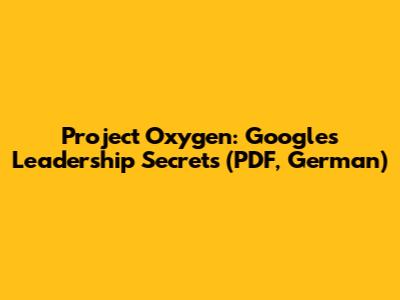 • Search Google (in German!): Use keywords like "Project Oxygen Google PDF Deutsch" or "Google FĂĽhrungskräfteentwicklung Project Oxygen PDF" to search for German articles, translations, or summaries. You might stumble upon a translated version or a detailed explanation in German.