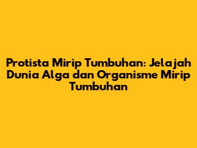 Protista mirip tumbuhan, atau sering disebut alga, adalah organisme eukariotik yang memiliki kemampuan fotosintesis. Mereka dapat menghasilkan makanan sendiri menggunakan energi cahaya matahari, mirip dengan tumbuhan. Namun, berbeda dengan tumbuhan yang memiliki struktur kompleks seperti akar, batang, dan daun, protista mirip tumbuhan memiliki struktur yang lebih sederhana. Mereka tidak memiliki jaringan vaskular (seperti pembuluh) yang mengangkut air dan nutrisi ke seluruh tubuhnya. Protista mirip tumbuhan hidup di lingkungan yang lembab atau berair, mulai dari laut hingga kolam air tawar. Mereka memainkan peran penting dalam ekosistem, menghasilkan oksigen melalui fotosintesis dan menjadi sumber makanan bagi organisme lain. Beberapa jenis protista mirip tumbuhan bahkan dapat menghasilkan racun yang berbahaya bagi manusia dan hewan.