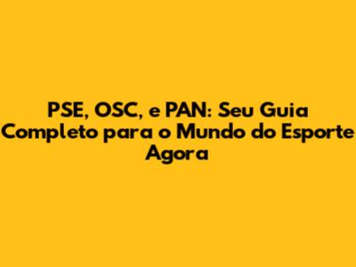 PSE, OSC, E PAN: Seu Guia Completo Para O Mundo Do Esporte Agora