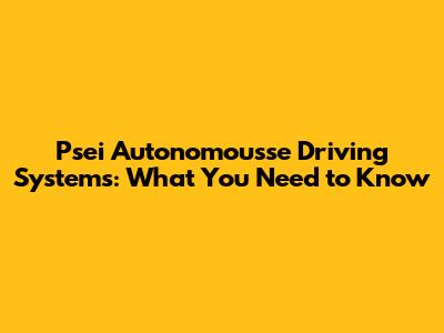 Psei Autonomousse Driving Systems: What You Need To Know