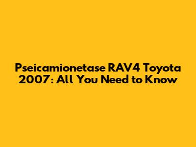 Pseicamionetase RAV4 Toyota 2007: All You Need To Know