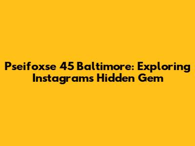 Pseifoxse 45 Baltimore: Exploring Instagram's Hidden Gem