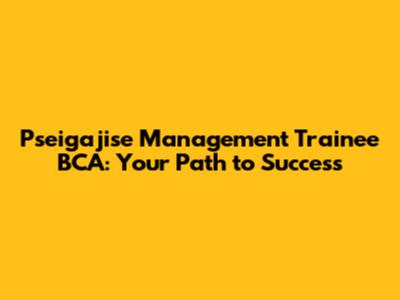 Pseigajise Management Trainee BCA: Your Path To Success