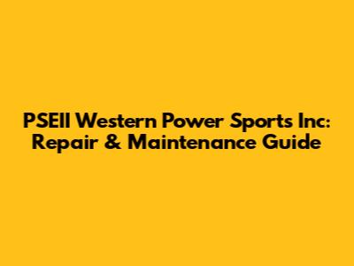 PSEII Western Power Sports Inc: Repair & Maintenance Guide