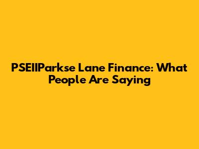 PSEIIParkse Lane Finance: What People Are Saying