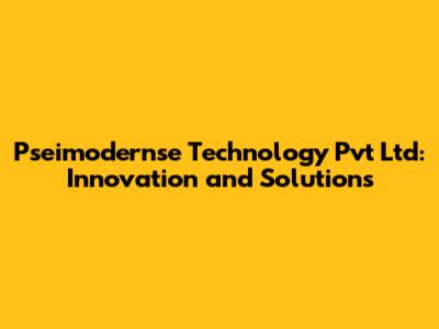 Pseimodernse Technology Pvt Ltd: Innovation And Solutions
