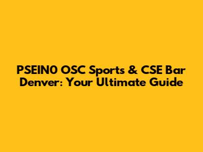 PSEIN0 OSC Sports & CSE Bar Denver: Your Ultimate Guide