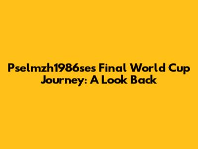 Pselmzh1986se's Final World Cup Journey: A Look Back