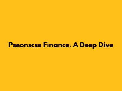 Pseonscse Finance: A Deep Dive