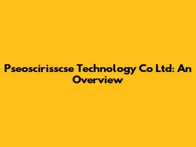Pseoscirisscse Technology Co Ltd: An Overview