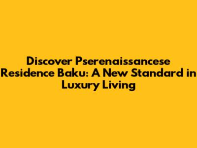 Discover Pserenaissancese Residence Baku: A New Standard in Luxury Living