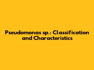 Pseudomonas Sp.: Classification And Characteristics