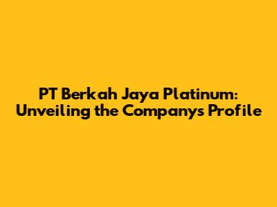 PT Berkah Jaya Platinum: Unveiling The Company's Profile