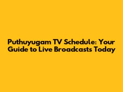 Hey there, TV enthusiasts! Are you on the hunt for the Puthuyugam TV schedule today live? Well, you've landed in the right place! We're diving deep into everything you need to know about the channel's programming, ensuring you don't miss a single moment of your favorite shows. Whether you're a die-hard fan of their dramas, reality shows, or news coverage, this guide is your ultimate resource for staying up-to-date with Puthuyugam TV's live schedule. We'll cover how to find the schedule, what kind of content you can expect, and even some tips and tricks for making the most of your viewing experience. So, grab your snacks, get comfy on the couch, and let's explore the exciting world of Puthuyugam TV together!
