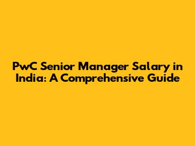 PwC Senior Manager Salary In India: A Comprehensive Guide