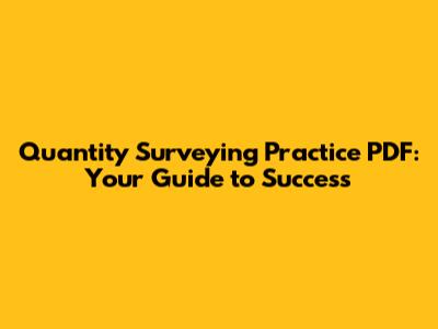 Quantity Surveying Practice PDF: Your Guide To Success