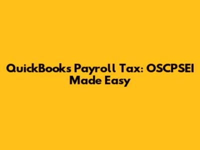 QuickBooks Payroll Tax: OSCPSEI Made Easy