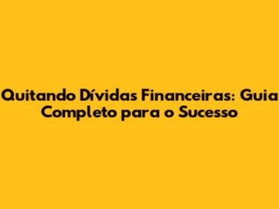 Quitando Dívidas Financeiras: Guia Completo Para O Sucesso