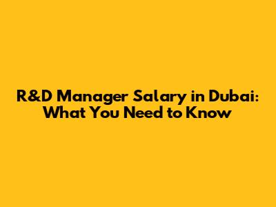 R&D Manager Salary In Dubai: What You Need To Know