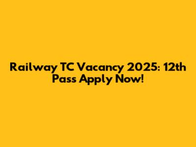 Railway TC Vacancy 2025: 12th Pass Apply Now!