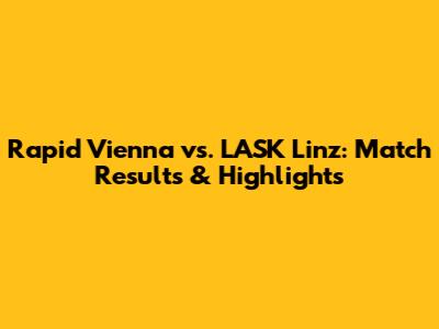 Rapid Vienna Vs. LASK Linz: Match Results & Highlights
