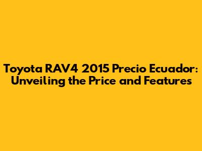 RAV4 2015 Price In Ecuador: Your Complete Guide