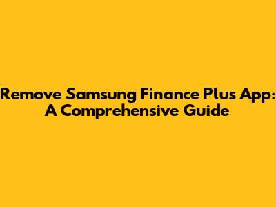 Remove Samsung Finance Plus App: A Comprehensive Guide
