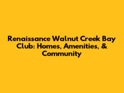 Renaissance Walnut Creek Bay Club: Homes, Amenities, & Community