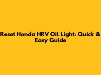 Reset Honda HRV Oil Light: Quick & Easy Guide