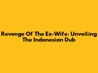 Revenge Of The Ex-Wife: Unveiling The Indonesian Dub